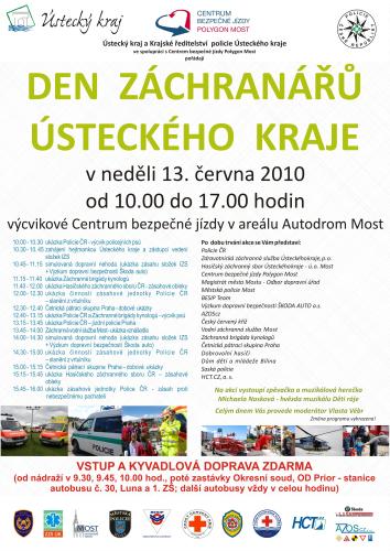 záchranářů. Ta proběhne v Centru bezpečné jízdy Polygon Most. Akce je v nemalé míře zaměřena zvýšení bezpečnosti na silnicích. Během ní se představí všechny složky integrovaného záchranného systému – Policie České republiky, Hasičský záchranný sbor Ústeckého kraje, územní odbor Most a Zdravotnická záchranná služba Ústeckého kraje. Chybět nebude ani Městská policie Most, Český červený kříž, Vodní záchranná služba Most a záchranářští psi. Nemalou částí se bude podílet také Saská policie. Ke zvýšení bezpečnosti na silnicích přispěje zapojení Odboru dopravní úřad mosteckého magistrátu, BESIP Teamu a Výzkumu dopravní bezpečnosti Škoda auto a.s.