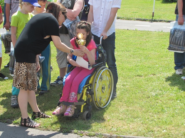Zvláštní cenu a pohár obdržela z rukou ředitelky soutěže Zdeny Jandlové soutěžící Terezka Vaisová, které v soutěžení  nezabránilo ani kolečkové křeslo. Terezka je žákyní ZŠ,MŠ PrŠ Vančurovy ulice.
