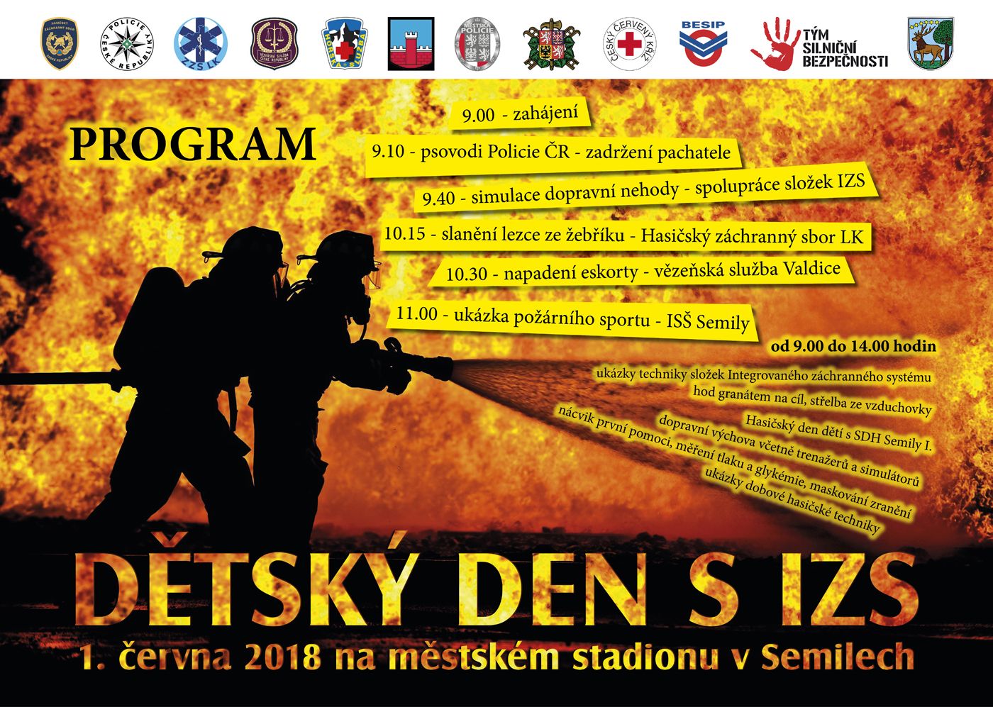 Krajské ředitelství policie Libereckého kraje zve 1. června 2018 všechny občany na městský stadion v Semilech, kde se od 9:00 do 14:00 hodin představí všechny složky Integrovaného záchranného systému.