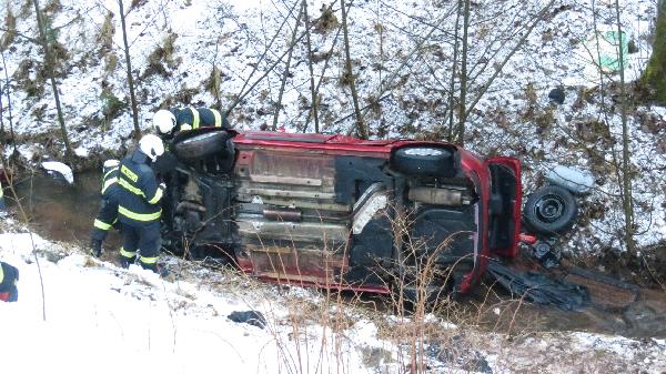 Dnes ráno v 6.30 se stala na silnici I/16 v katastru obce Zlatá Olešnice havárie osobního vozidla značky Citroen. K nehodě pravděpodobně došlo tak, že 26letá řidička nepřizpůsobila rychlost jízdy zledovatělému povrchu silnice. Při průjezdu levotočivé zatáčky dostala smyk, vyjela vlevo mimo komunikaci, kde se zřítila ze svahu do koryta potoka. Vozidlo se při pádu přetočilo a skončilo částečně na boku a částečně na střeše. Žena, která zůstala ve vozidle zaklíněná a hasiči ji museli vyprostit, utrpěla blíže nespecifikované zranění, s kterým byla letecky transportována do nemocnice, kde ji byl nařízen odběr krve.