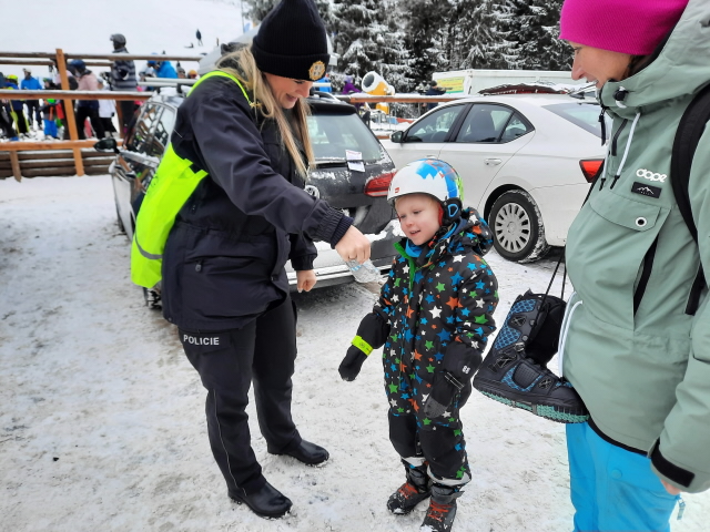 Krušné hory již konečně navštívila paní Zima a návštěvníci hor začali sněhovou nadílku využívat především na sjezdovkách SKI areálů. Proto se také policejní preventistky z Krajského ředitelství policie Karlovarského kraje za návštěvníky ve čtvrtek 19. ledna 2023 vydaly a obohatily je nejen o preventivní rady, ale i o preventivní materiál a dárečky.