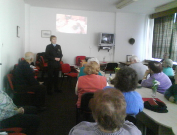 Po přednášce senioři obdrželi různé předměty např. bloky s preventivními radami, propisovací tužky, osobní alarmy, reflexní pásky na oblečení a v omezeném množství i reflexní deštníky.