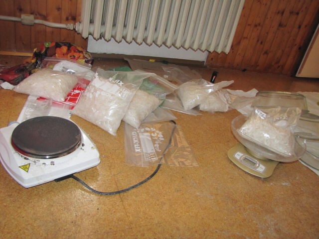 Kriminalisté v Karlovarském kraji pokračují v úspěšném boji proti drogové kriminalitě. Ve čtvrtek dne 30. 10. 2014 odhalili karlovarští kriminalisté další výrobnu pervitinu, a to v Karlových Varech. Při domovní prohlídce bytu zadrželi 25 letého cizince z Chebu a zajistili téměř 5 kilogramů krystalické látky Pervitin připravenou k přímé distribuci. Při prodeji na černém trhu by si tak prodejci přišli na cca 5 milionů korun.