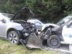 V pondělí 1. srpna jel před pátou hodinou večer řidič vozidla Škoda Felicia ve směru od obce Rudolec na Stáj. Při projíždění pravotočivé zatáčky vyjel do protisměru, kde se čelně střetl s protijedoucím vozidlem Subaru Outback. Při nehodě se těžce zranil devětatřicetiletý řidič vozidla Škoda. Letecky byl transportován do brněnské nemocnice. Zranění utrpěl i šedesátiletý řidič vozidla Subaru. Převezen byl do nemocnice v Novém Městě na Moravě. Místo nehody bylo průjezdné pouze jedním jízdním pruhem a policisté zde řídili dopravu kyvadlově. Provedenou dechovou zkouškou policisté u řidiče vozidla Subaru požití alkoholu nezjistili. U řidiče vozidla Škoda byl nařízen odběr krve. Škodu na vozidlech policisté vyčíslili na 450 tisíc korun.