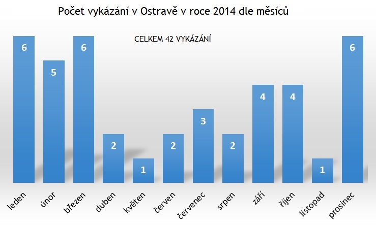 Ostravští policisté vykázali celkem 42 osob (41 mužů a 1 ženu). Nejvíce se vykazovalo v chladnějších měsících – lednu, březnu a prosinci, vždy šestkrát. Pětkrát pak v únoru a čtyřikrát v září a říjnu. Teritoriálně je nejčastějším místem, kde dochází k vykázání, obvod Poruby (18 případů), následuje Přívoz (7 událostí) a Slezská Ostrava (6 vykázání).