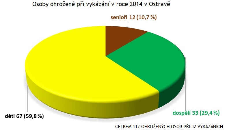 Nejčastěji byly (při incidentech domácího násilí, po kterých následovalo vykázání) ohroženy děti a to celkem 67 dětí ve věku 0 – 18 let. Mezi osobami ohroženými (u případů vykázání) bylo 33 dospělých a 12 seniorů (ve věku od 60 let a starších). Z uvedeného je zřejmé, že většina případů se odehrává v rodinách, ve kterých žijí děti.