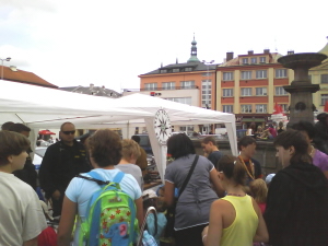 V další části náměstí byly umístěny stánky různých organizací a institucí. Ve stáncích byly připraveny pro děti různé soutěže a disciplíny, zaměřené zejména na hendikepované osoby, např. děti se mohly pohybovat jako osoby s postižením zraku se slepeckou holí i jako osoby s tělesným postižením při jízdě na invalidním vozíku.