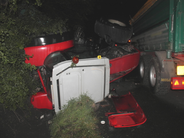 Při havárii došlo k poškození sloupu telefonního vedení, který se zlomil a k vytržení a spadnutí telefonního kabelu na vozovku. Policisté na místě s řidiči provedli dechovou zkoušku na alkohol, která byla u obou negativní. Při dopravní nehodě nedošlo k žádnému zranění.