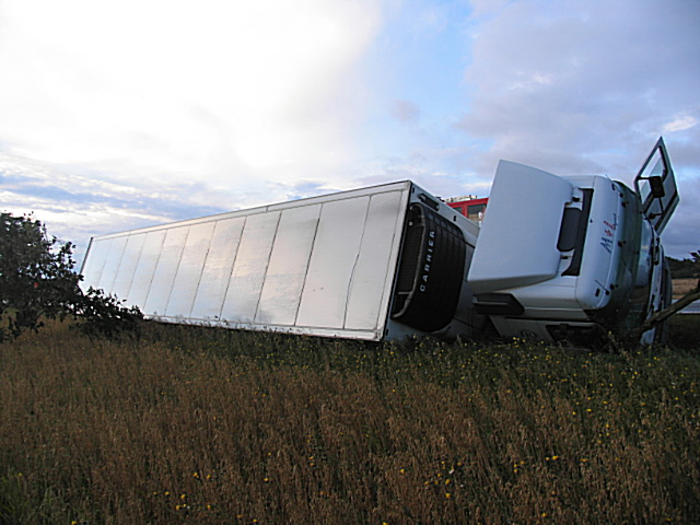 30. srpna kolem páté hodiny ranní řídil osmapadesátiletý řidič nákladní automobil Mercedes Benz s návěsem, a to ve směru od obce Toužim do Karlových Varů. Na přímém úseku se plně nevěnoval řízení svého vozidla a vyjel vpravo mimo komunikaci, kde poničil silniční příkop. Následkem toho došlo k převrácení kamionu. Při nehodě došlo k úniku cca 180 litrů nafty. Ke zranění osob nedošlo. Alkohol u řidiče byl vyloučen dechovou zkouškou. Způsobená škoda byla předběžně odhadnuta na částku nepřesahující 300 tisíc korun.