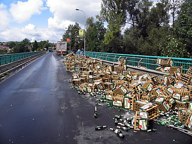 30. srpna asi třicet minut po poledni řídil osmapadesátiletý řidič nákladní soupravu vozidla Mercedes, a to v Karlových Varech – Doubí, ve směru od Plzně do Jenišova. Na křižovatce v ulici Studentská, nepřizpůsobil rychlost jízdy profilu komunikace, přičemž při průjezdu nejprve pravotočivou a následně levotočivou zatáčkou, došlo k uvolnění nedostatečně uchyceného nákladu. Uvolněný náklad (přepravky s pivem) vypadl na vozovku. Dechová zkouška na alkohol byla negativní. Způsobená škoda byla předběžně odhadnuta na částku nepřesahující 98 tisíc korun.