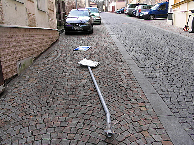 Dne 15. dubna 2013 kolem 07:45 hodin řídil nezjištěný řidič doposud neupřesněné vozidlo po ulici Zeyerova. Při jízdě poškodil svislé dopravní značení "Pěší zóna". Řidič z místa odjel, aniž by si zde splnil svou zákonnou povinnost účastníka dopravní nehody.