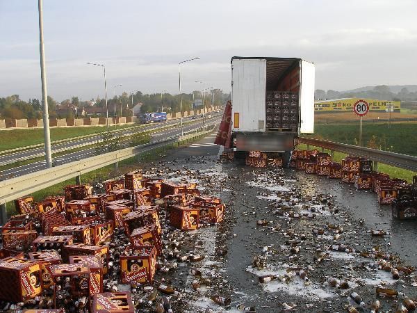 V 7:18 jsme přijali hlášení o dopravní nehodě na kruhovém objezdu u Opatovic nad Labem. Jednašedesátiletý řidič nákladního vozidla DAF s návěsem nepřizpůsobil rychlost povaze nákladu a při sjezdu z kruhového objezdu ve směru na Hradec Králové vysypal náklad, který vezl. Vlivem poškození bočnic návěsu se na celou šířku vozovky vysypala asi polovina naložených lahvových piv. Z důvodu úklidových prací bude sjezd zhruba do 12 hodiny úplně uzavřen. Objízdná trasa vede přes Opatovice n.L.
