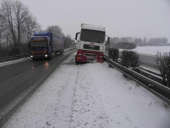 Dne 6. 12. 2010 v 5.10 hodin mezi obcemi Mohelnice a Olomouc, došlo k dopravní nehodě nákladního vozidla Man TGA s přívěsem. 57letý řidič nákladního vozidla z Písku, nedodržel bezpečnou vzdálenost za osobním vozidlem, které zpomalilo. Řidič manu prudce sešlápl brzdový pedál a zatočil vlevo, kdy se s vozidlem dostal mimo silnici, kde se celým levým bokem opřel o svodidlo. Při nehodě ke zranění osob nedošlo, celková škoda činí 70000 Kč. U řidiče byla provedená dechová zkouška na alkohol s pozitivním výsledkem 0, 58 promile alkoholu v dechu. Řidiči byl na místě odebrán řidičský průkaz, věc je stále v šetření policie.