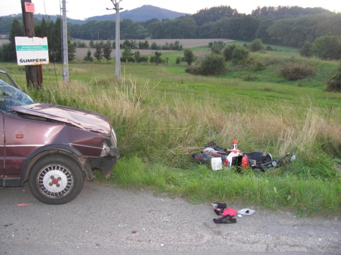 Dne 10. 8. 2010 kolem devatenácté hodiny došlo na silnici druhé třídy číslo 446, mezi Šumperkem a Bratrušovem, u vyústění účelové komunikace od ulice Zemědělská, k dopravní nehodě osobního vozidla s malým motocyklem. 58letý řidič osobního vozu značky Fiat Uno, jedoucí ve směru na obec Bratrušov, před vyústěním účelové komunikace od ulice Zemědělská, započal přejíždět před ním jedoucí malý motocykl značky Piagio, řízený patnáctiletým řidičem. Ve chvíli, kdy uno vyjelo do levého jízdního pruhu, začal, podle vyjádření řidiče una, řidič malého motocyklu odbočovat vlevo, na což zareagoval intenzivním brzděním. Nehodě však již nedokázal zabránit a po střetu tlačil fiat motocykl před sebou několik metrů vlevo do příkopu. Řidič motocyklu při šetření nehody uvedl, že před odbočením vůz viděl ve zpětném zrcátku a po zapnutí směrovky začal odbočovat. Při nehodě došlo k lehkému zranění řidiče piagia a zranění 16letého spolujezdce, které lékař záchranné služby kvalifikoval jako těžké. Oba byli ošetřeni v šumperské nemocnici. Dechová zkouška u obou řidičů byla negativní. Škoda na vozidlech byla na místě předběžně vyčíslena celkem na 10000 Kč. Příčina nehody a kdo ji zavinil je nadále v šetření Policie České republiky.