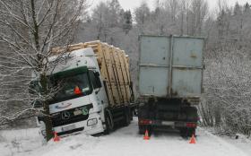 Dvě dopravní nehody mělo za následek včerejší rozmarné počasí. K první nehodě došlo v deset hodin dopoledne na silnici mezi obcemi Černá Voda a Štachlovice. Dva řidiči nákladních vozidel Daf a Mercedes ve věku 54 a 41let se navzájem vyhýbali na úzké silnici a při tom o sebe zavadili zpětnými zrcátky. Řidič vozidla Mercedes strhnul řízení doprava a sjel do příkopy, kde se částečně zastavil o strom. 35letá řidička osobního vozidla Opel, která v uvedenou dobu jela za Mercedesem, nestačila na vzniklou situaci zareagovat a narazila s vozidlem do boku nákladního vozidla Mercedes. Škoda byla předběžně odhadnuta na 28.000 korun. Uvízlý kamion museli vytáhnout až přivolaní hasiči.