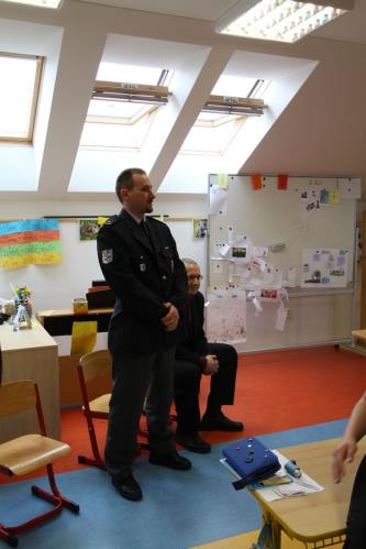 Do třídy pak vstoupili kriminalističtí technici, kteří poutavým způsobem vysvětlili zákonitosti této profesní specializace. Nadšené děti získaly své daktyloskopické otisky a nebylo žáka, který by s touto „trofejí“ třídu neopouštěl. Svůj otisk třímaly v rukou také učitelky.