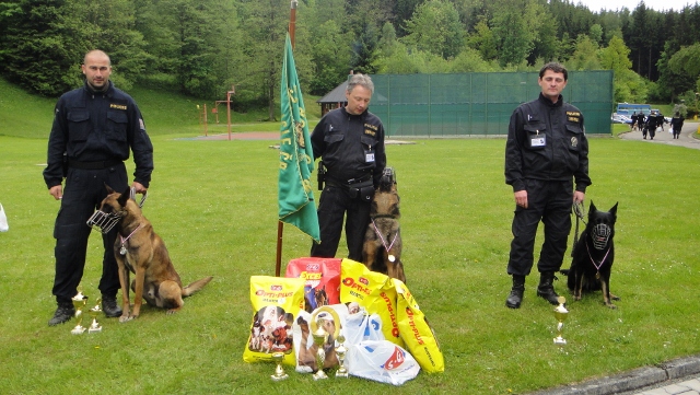 Ocenění policisté se psy obdrželi poháry, medaile a další ceny, které převzali z rukou náměstka pro vnější službu KŘP Khk plk. Ing. Jana Pavelky a dalších služebních funkcionářů. Vítěz si také převzal putovní prapor služební kynologie, který se vrací zpět doTrutnova. K dosaženým úspěchům GRATULUJEME! Poděkování patří právem i čtyřem rozhodčím v čele s p. Lubošem Jánským a vedoucímu Oddělení služební kynologie mjr. Ing. Radku Laušmanovi.