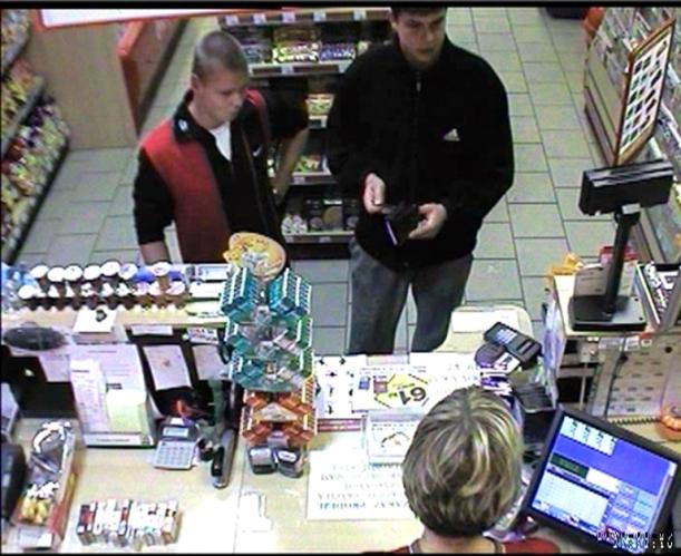 (na fotografii), kteří byli nedlouho před přepadením na benzínové stanici a mohli by pomoci s objasňováním případu. Prosíme muže