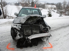 Mezi obcemi Mezina a Rázová jel v pondělí 8.2.2010 před 16,00 hodinou 73letý muž s vozidlem Subaru a při jízdě na přímém úseku začal zrychlovat a dostal na zledovatělém povrchu silnice smyk. Ten nezvládl a vjel do levé poloviny vozovky, kde se střetl s protijedoucí fabii 37letého řidiče, který při nehodě utrpěl lehké zranění a s vozidlem skončil v příkopu. Požití alkoholu bylo vyloučeno dechovou zkouškou. Způsobená škoda činí 310 tisíc Kč.