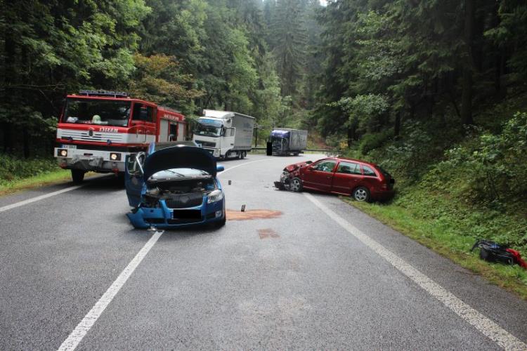 JABLONECKO - Včera dopoledne se v železnobrodských zatáčkách řidič přejel do protisměru, kde se střetl s protijedoucím vozidlem, ve kterém se při tomto střetu zranili čtyři osoby.