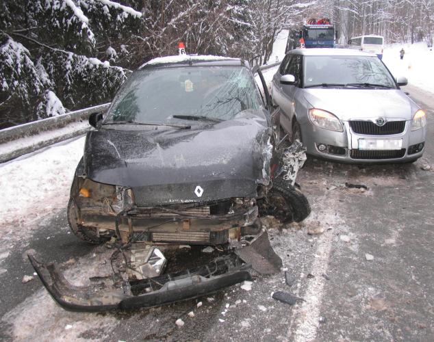 Dne 17. 12. 2010 kolem 13.19 hodin na silnici ve směru od obce Kopřivná do obce Bratrušov na Šumpersku, došlo k nehodě dvou osobních vozidel a autobusu. K nehodě došlo tak, kdy 18letá řidička vozidla Renault ze Šumperska, jedoucí od obce Kopřivná, nepřizpůsobila rychlost vozidla a na zledovatělém povrchu přímého úseku silnice dostala smyk. S vozidlem vyjela do protisměru, kde se střetla s projíždějícím autobusem, který řídil 54letý řidič z Velkých Losin. Další 47letá řidička ze Šumperka s vozidlem Škoda Fabia nedodržela bezpečnou vzdálenost za renaultem, kdy již nedokázala zareagovat na nastalou situaci a zezadu do renaultu narazila. Při střetu došlo k lehkému zranění řidičky renaultu, kdy cestující ani řidič autobusu a řidička škodovky zraněni nebyli. Dechová zkouška u řidičů byla negativní. Řidička renaultu byla s lehkým zraněním ošetřena v Šumperské nemocnici. Celková škoda činí 140000 Kč.