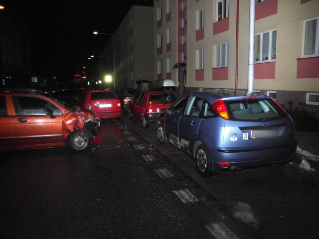 Ve čtvrtek večer 12. 1. 2012 došlo krátce po půl jedenácté v Trutnově na ulici Maxima Gorkého k dopravní nehodě, při které se střetla dvě vozidla. Jedno z uvedených vozidel vlivem nárazu poškodilo další dva zaparkované automobily. Policisté dopravního inspektorátu v Trutnově, kteří na místo vyrazili, provedeným šetřením zjistili, že řidič osobního motorového vozidla Daewoo na přímém úseku svou přední částí narazil do levé zadní části zaparkované škodovky, která vlivem nárazu poškodila další dvě zaparkovaná vozidla značek Ford a Renault. Při uvedené dopravní nehodě došlo ke zranění řidiče vozidla Daewoo i řidičky vozidla Škoda, která seděla ve stojícím vozu. Oba zranění byli k ošetření transportováni do trutnovské nemocnice. Muži zákona provedeným šetřením zjistili, že třiačtyřicetiletý řidič vozidla Daewoo usedl za volant pod vlivem alkoholu. Dechová zkouška potvrdila přes jednu promili v jeho dechu. Škoda na vozidlech byla vyčíslena na 155 tisíc korun.