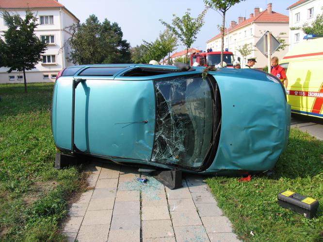 Včera odpoledne řešili dopravní policisté nehodu, která se stala v Kroměříži na křižovatce ulic Vrobelova a Sokolovská. Devětatřicetiletý řidič motorového vozidla Volkswagen Passat z Holešova nerespektoval dopravní značení STOP a vjel do křižovatky. Tam přehlédl automobil Fiat Punto jedoucí zprava po hlavní silnici. Došlo ke střetu, při kterém se fiat vychýlil ze směru své jízdy, dostal smyk a následně vyjel vlevo mimo cestu přes vyvýšený obrubník až na chodník, kde narazil do odpadkového koše a převrátil se na pravý bok. Při nehodě utrpěla lehké zranění třiapadesátiletá řidička havarovaného vozu z Kroměříže. Následně byla ošetřena záchranáři.