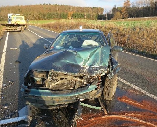 Včera 27. 11. odpoledne 45letý řidič osobního auta Škoda Octavia v úseku za obcí Domašín v pravotočivé zatáčce předjížděl soupravu nákladního auta s přívěsem a přitom se čelně střetl s protijedoucím autem Peugeot 58letého řidiče. Škodovka se zároveň střetla zadní částí i s přívěsem předjížděného nákladního auta. Oba řidiči osobních aut utrpěli lehká zranění.