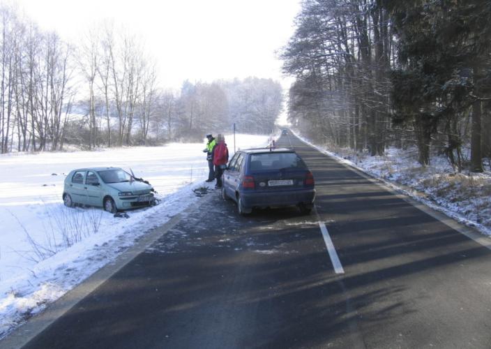 Dne 31. 1. 2011 kolem třinácté hodiny došlo k dopravní nehodě mezi osobními vozidly Škoda Felicia a Fiat Punto. Řidič 65letý muž z Uničova s vozidlem Škoda Felicia jel od obce Nový Malín na Hrabišín, kdy na rovném úseku předjížděl nezjištěné osobní vozidlo. Předjížděcí manévr řidič zahájil v době, kdy v protisměru jelo osobní vozidlo Fiat Punto, které řídila 34letá žena z Vikýřovic. Následně došlo ke střetu levými předními obrysy, kdy byl fiat vlivem nárazu vytlačen mimo silnici. Při dopravní nehodě byla lehce zraněna řidička fiatu, která byla ošetřena na místě. Dechová zkouška u obou řidičů byla negativní, celková škoda činí 50000 Kč.