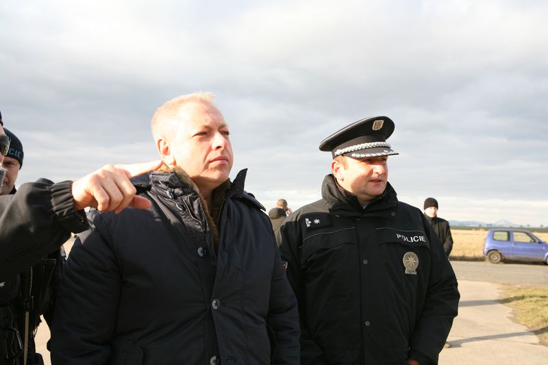 Ukázky funkce zastavovacích pásů se s policejním prezidentem zúčastnil i ministr vnitra