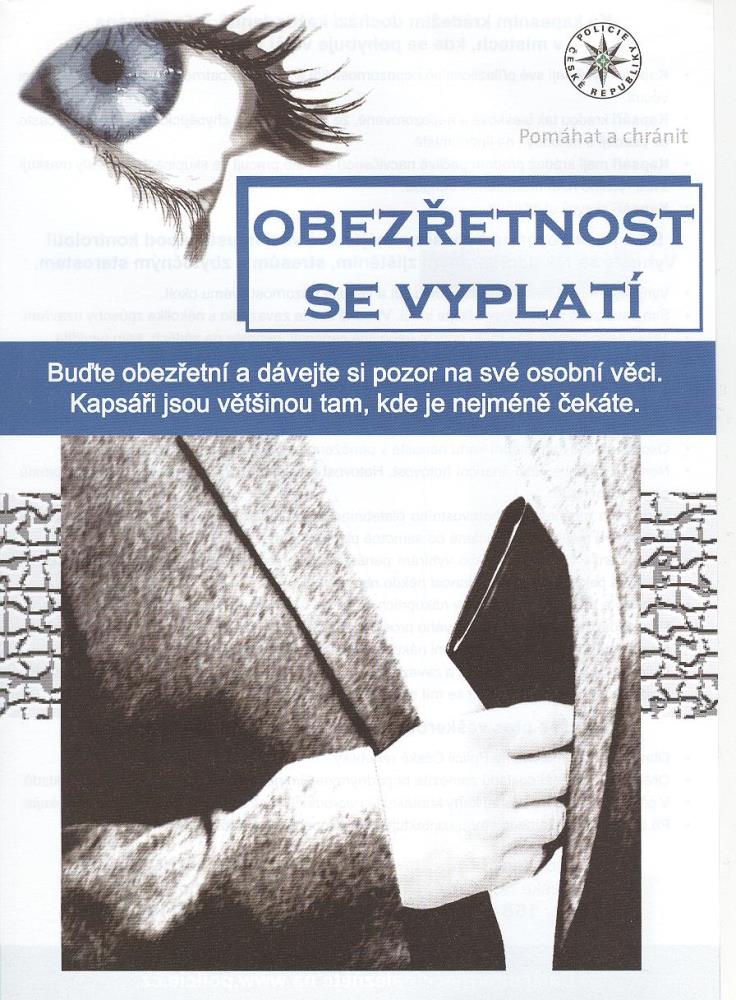 Policisté přerovského okresu se opět v předvánočním čase zapojili do preventivní celorepublikové kampaně a zaměřili se na zákazníky nákupních a prodejních center. Při této akci kontrolovali odstavená vozidla na parkovištích v bezprostřední blízkosti prodejen a způsob jakým si majitelé chrání své věci. I když přes neustálé výzvy se najdou řidiči, kteří po opuštění vozu nechají na viditelném místě odložené kabelky, tašky a cenné věci. Na autech jsme nechali upozornění s tím, aby lidé měli své věci pod kontrolou a zbytečně nepřitahovali takto pozornost zlodějů. I ve vnitřních prostorách center jsme oslovovali zákazníky a upozorňovali je na nebezpečí spočívající v nestřežení a odložení věcí do nákupního vozíku. Osloveným jsme na místě předávali preventivní materiál.