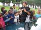 Po chvíli do tábora vjíždí hlídka dopravní policie. Vítá přítomné policejním majákem. Modré blikající světlo za zvuku nevlídné sirény. Děti si mohou prohlédnout policejní vůz, vyzkoušet policejní megafon a zeptat se všech přítomných na všemožné věci. Dokonce přihlížejí i snímání otisků z kapoty policejního vozu. Naše návštěva končí. Hlídky se rozjíždějí na své útvary a děti odcházejí za dalším programem.