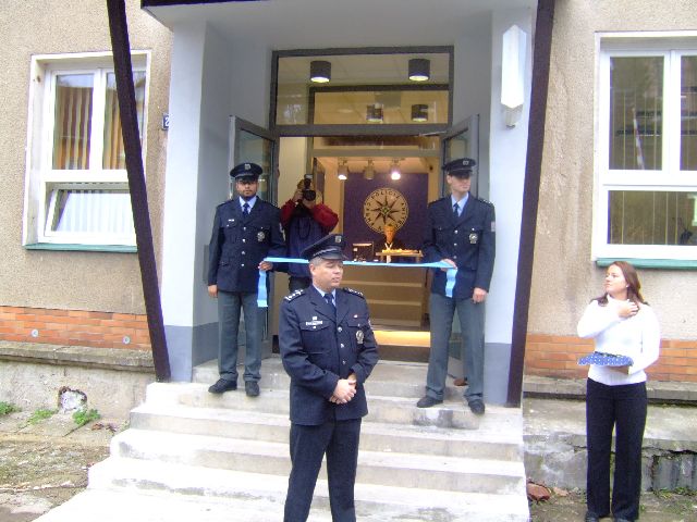 Vedoucí Územního odboru Vnější služby v Jablonci n.N. plk. Ing.Bc. Pavel Langr a starosta města Tanvald Petr Polák slavnostně přestřihli pásku ve vstupu do nového Kontaktního a koordinačního centra, které vzniklo na Obvodním oddělení v Tanvaldě