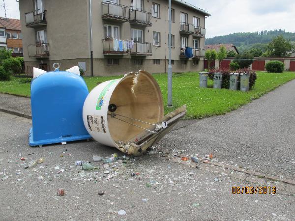 Škoda na kontejnerech je odhadována na 30.000 koruna a na vozidle na 10.000 korun.