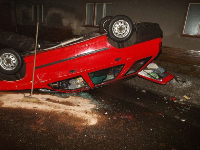 Po nehodě zůstalo vozidlo na střeše