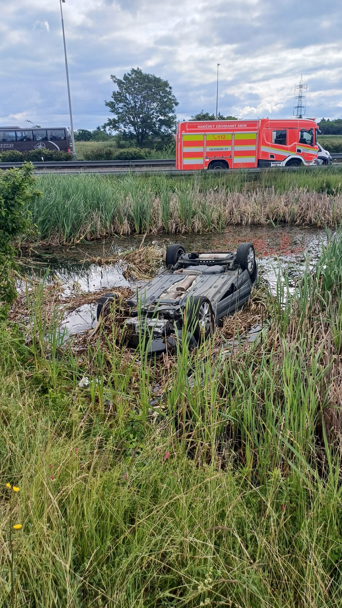Ředitel pražské policie dnes osobně poděkoval muži, který vyprostil ženu s mladou dívkou z vozidla, které po nehodě skončilo na střeše v retenční nádrži.