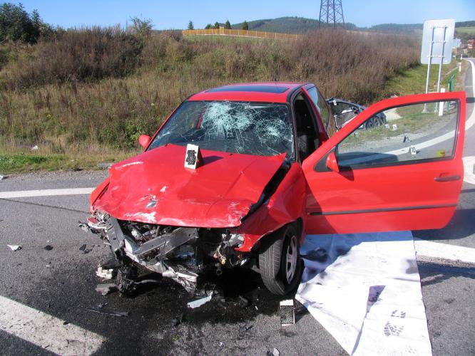 Dopravní policisté v pondělí, krátce po poledni, vyjížděli k dopravní nehodě dvou osobních aut, ke které došlo na průsečné – čtyřramenné křižovatce, v katastru obce Těšovice, kde se kříží hlavní komunikace II. třídy č. 145 s vedlejší komunikací II. třídy číslo 141. Řidička, jedoucí po vedlejší komunikaci s osobním vozidlem Peugeot 308, nerespektovala svislé dopravní značení „Stůj, dej přednost v jízdě!“ a nedala přednost řidiči osobního vozidla VW Polo, které příjíždělo po hlavní komunikaci, následkem čehož došlo ke střetu těchto dvou vozidel. Řidič osobního vozidla VW Polo byl společně s jeho spolujezdcem převezen rychlou záchrannou službou do nemocnice s lehkými zraněními. Předběžným šetřením na místě byla vyčíslena škoda na havarovaných vozidlech zhruba 300 000 korun.