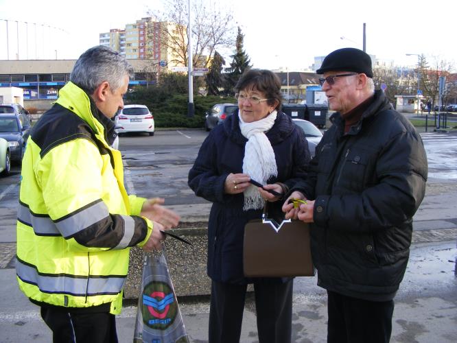 Policisté se tento týden ve spolupráci s krajským koordinátorem Besipu zaměřili na seniory jako osoby pohybující se v silničním provozu. Na náměstí Přerovského povstání v Přerově, blízko polikliniky, jsme oslovovali osoby vyššího věku a upozorňovali je na nebezpečí související s pohybem v silničním provozu v nočních hodinách a za snížené viditelnosti. Senioři patří ke skupině, která se obléká spíš do oděvů tmavších tónů a proto jsou pro řidiče viditelní až na velmi krátkou vzdálenost. Každý oslovený dostal reflexní pásku na ruku a doporučení, aby ji používal ke své vlastní bezpečnosti. V daný den jsme jich rozdali na sto kusů. Se stejnou akcí se chystáme také do další lokalit okresu Přerov.