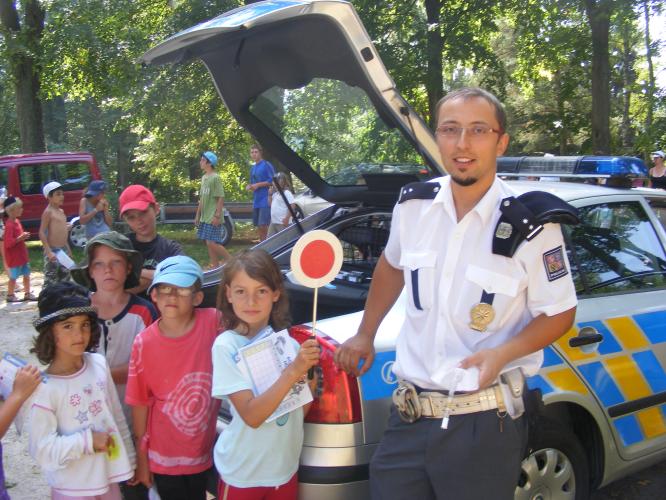 Policisté z Územního odboru J.Hradec, jako každoročně přijeli prezentovat svojí práci na letní dětský tábor v Dolním Radíkově. Ukázky práce mužů zákona shlédlo 34 táborníků i jejich vedoucí. Dopravní policista Ondřej Novák prověřil, zda někdo z táborníků není pod vlivem alkoholu či drog. Pohovořil nejen o práci dopravních policistů. Dále táborníkům předvedl služební vozidlo dopravní policie. Děti si ověřily své znalosti z dopravních značek a dopravní problematiku pod vedením nprap. Vladimíra Daniela z OOP Dačice, kdy každý táborník vyplnil dopravní test a za své výsledky byl policistou odměněn drobnými předměty s logem policie. Prap. Martin Pejčoch z OOP Dačice děti seznámil se zastavovacím pásem a jeho využitím či vybavením policejní hlídky na obvodním oddělení. Táborníci měli možnost si výstroj policisty rovněž vyzkoušet. Tisková mluvčí policie por. Hana Millerová pohovořila o bezpečnosti dětí v silničním provozu to nejen o prázdninách. Připomněla nutnost nošení cyklistické přilby i reflexních prvků. V závěru prezentace policisté odpovídali nejen malým táborníkům, ale i jejich vedoucím na nejrůznější dotazy ze své práce, ale i z běžného života. Policisté malým táborníkům přislíbili, že je v příštím roce opět navštíví.
