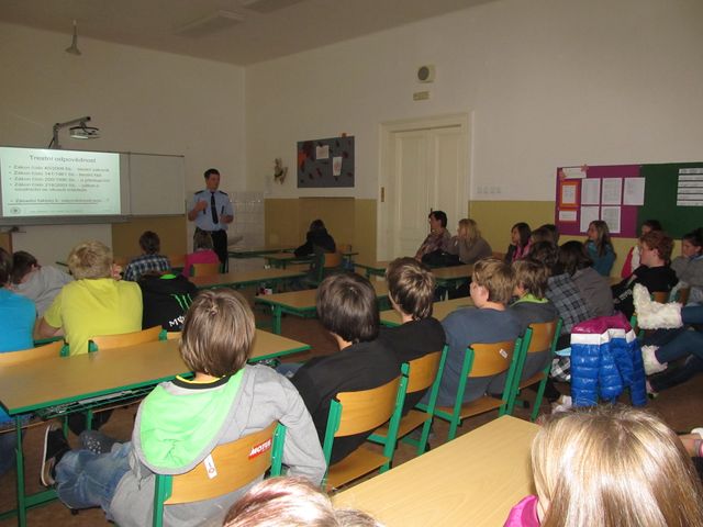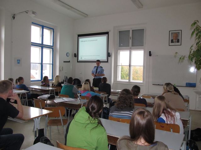 Základní školy Chlumec nad Cidlinou. Zde byly realizovány tři přednášky pro všechny žáky osmých a devátých tříd školy. Téma přednášek bylo shodné a jednalo se o problematiku trestní odpovědnosti a návykových látek ve spojení s trestnou činností mládeže. Při přednášce zaznělo několik zajímavých dotazů, které policista žákům náležitě zodpověděl.