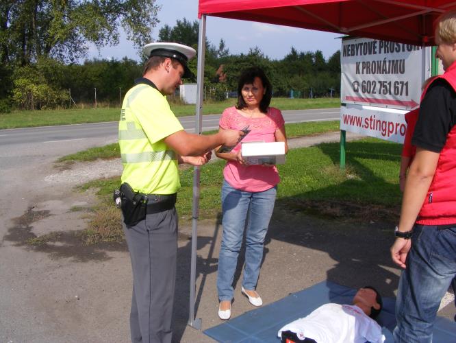 Již podruhé proběhla tento týden na Přerovsku dopravně bezpečnostní akce zaměřená nejen na kontrolu řidíčů a vozidel, včetně dokladů, ale také na prevenci v oblasti poskytování první pomoci. Spolupráci na tomto projektu přijal Oblastní spolek Českého červeného kříže Přerov a koordinátor Besipu olomouckého kraje. Při kontrole byli řidiči osloveni zástupci červeného kříže s dotazy ohledně schopnosti poskytnutí pomoci. Ne vždy byla odpověď správná, ale většina řidičů přibližně věděla, co si počít, pokud by se do takové situace dostali. Kdo chtěl, měl také možnost vyzkoušet si srdeční masáž přímo na figuríně. Oslovení řidiči neodcházeli s prázdnou, ale mimo praktických zkušeností dostali autolékárničku a drobné upomínkové předměty.