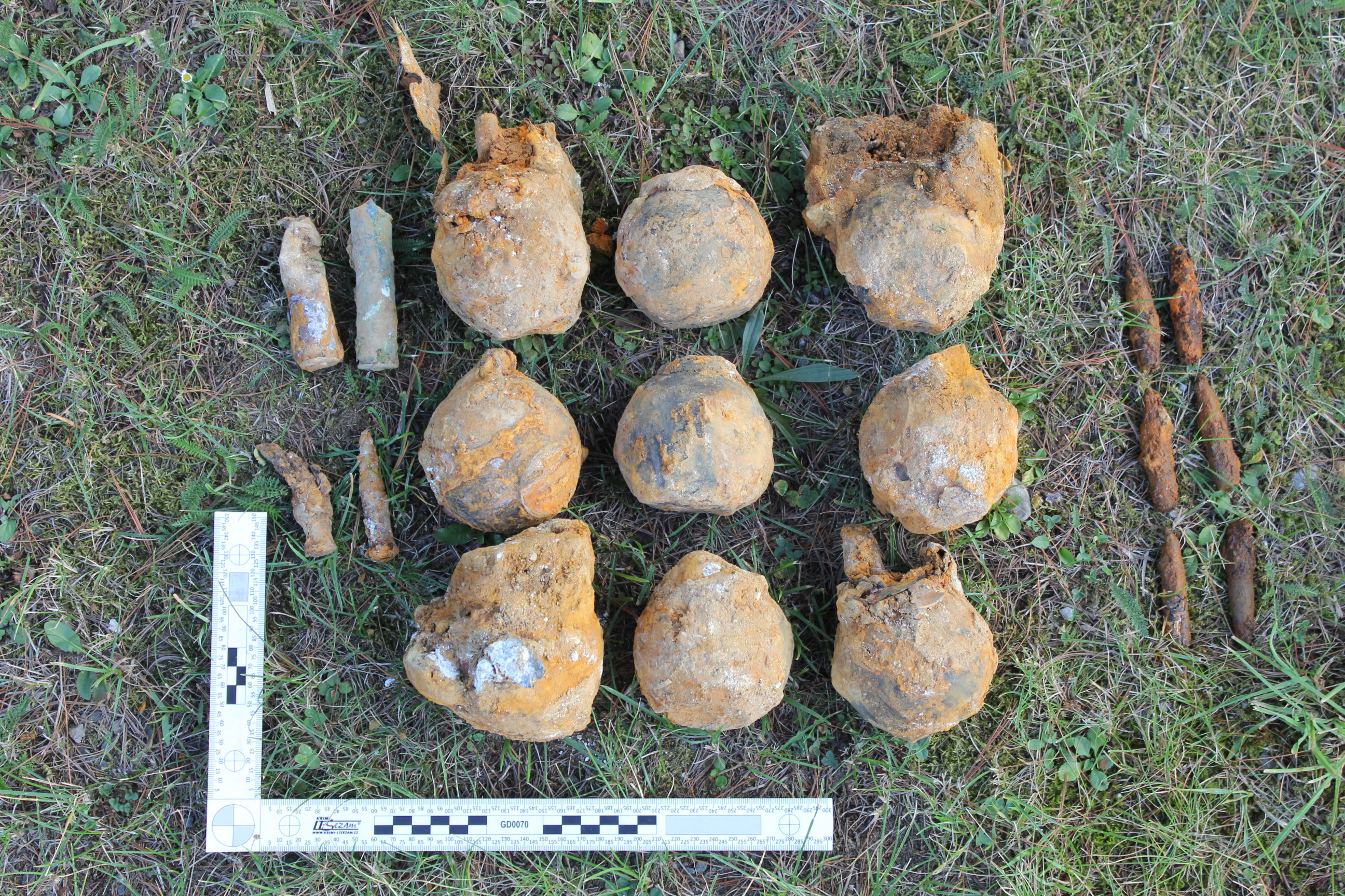 Zajištěná munice a to devět kusů leteckých pum a časových leteckých granátů, více než desítka nábojů různých ráží byla převezena pyrotechnikem k likvidaci.