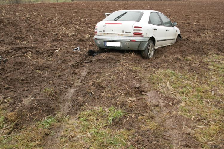 Daleko se však nedostal. Stačila první zatáčka a vůz skončil v poli. Ze zapadlého auta si vzal alespoň plastovou přepravku s 16 lahvemi jedenáctistupňového piva, klíčky od vozidla a osobní doklady.