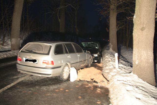 V sobotu 28. ledna v 6,00 hodin projížděl 21-letý muž z Liberce s vozidlem značky Audi A3, silnicí I/13 obcí Mníšek, směrem na Frýdlant v Čechách. Při průjezdu pravotočivé zatáčky dostal na namrzlé vozovce smyk, vyjel vlevo mimo komunikaci a narazil do vzrostlého stromu. Po nárazu se vozidlo odrazilo, otočilo o 180 stupňů a střetlo se ještě s protijedoucím vozidlem značky BMW 320.