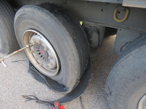Řidiči kamionu prasklo za jízdy kolo