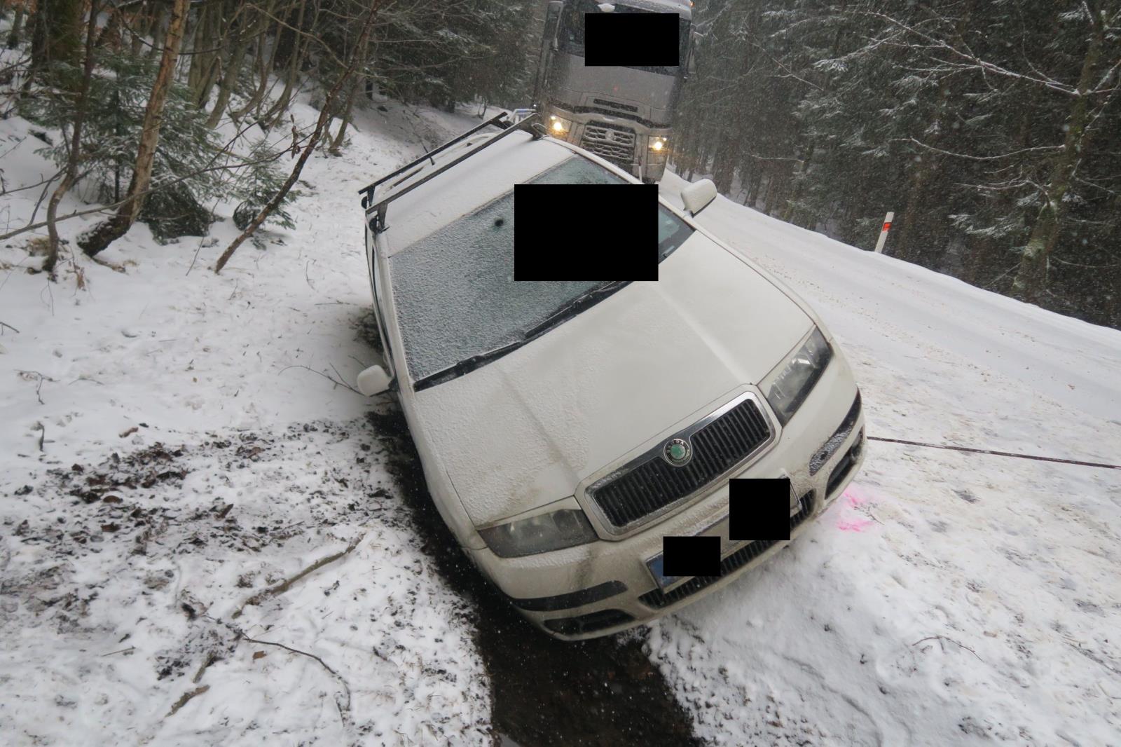 K jedné takové dopravní nehodě došlo například odpoledne krátce po čtrnácté hodině na silnici třetí třídy v katastru Jablonce nad Nisou. Řidič s vozidlem Škoda Fabia jel ve směru od města na Dolní Černou Studnici, kde vlivem nepřiměřené rychlosti na zasněžené vozovce nezvládl průjezd levotočivou zatáčkou a vyjel vpravo mimo silnici do příkopu.