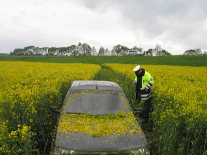 Policisté obvodního oddělení Zábřeh šetří dopravní nehodu ze dne 16. 5. 2010, kdy 20letá řidička vozu Peugeot z Ústeckoorlicka, kolem půl čtvrté odpoledne řídila osobní motorové vozidlo značky Peugeot mezi obcemi Leština a Lesnice. Při průjezdu pravotočivou zatáčkou nezvládla řízení a s vozem sjela vpravo ze silnice do řepkového pole. Po příjezdu hlídky na místo se právě řidička snažila z pole vyjet. Dechová zkouška u ženy ukázala hodnotu 2,09 promile alkoholu v dechu. Policisté ženu zadrželi. Po lékařském vyšetření byla v nemocnici hospitalizována pro nevolnost. Ke zranění osob nedošlo. Ve své výpovědi dnešního dne žena uvedla, že do pole vjela ještě střízlivá, potom z místa odešla pro pomoc a přitom ve vesnici vypila dvě piva. Po návratu k autu se s ním snažila vyjet z pole, když na místo přijela hlídka. Celá věc je nadále v šetření policie.
