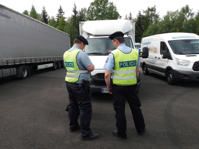 Tři desítky policistů kontrolovali nákladní vozidla u dálnice D6 na parkovišti u Transmotelu u Sokolova. Akce se zúčastnili také hlídky celníků, specialista z Hasičského záchranného sboru, zaměstnankyně z Česká inspekce životního prostředí a specialisté z Centra služeb pro silniční dopravu.