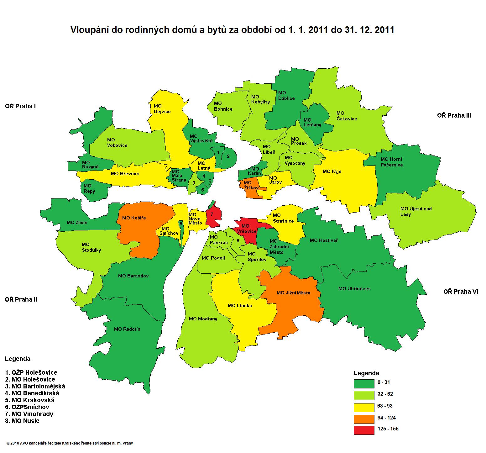 Jak je patrné z policejních statistik, došlo v roce 2011 k poklesu v počtu vloupání do bytů a domů. V roce 2010 policisté v Praze vyšetřovali 2753 případů vloupání do bytů a domů, v roce 2011 to bylo o 421 případů méně, tedy 2332 případů. Počet případů z roku 2011 se tak vrací zpět k situaci v letech 2007 a 2008.
