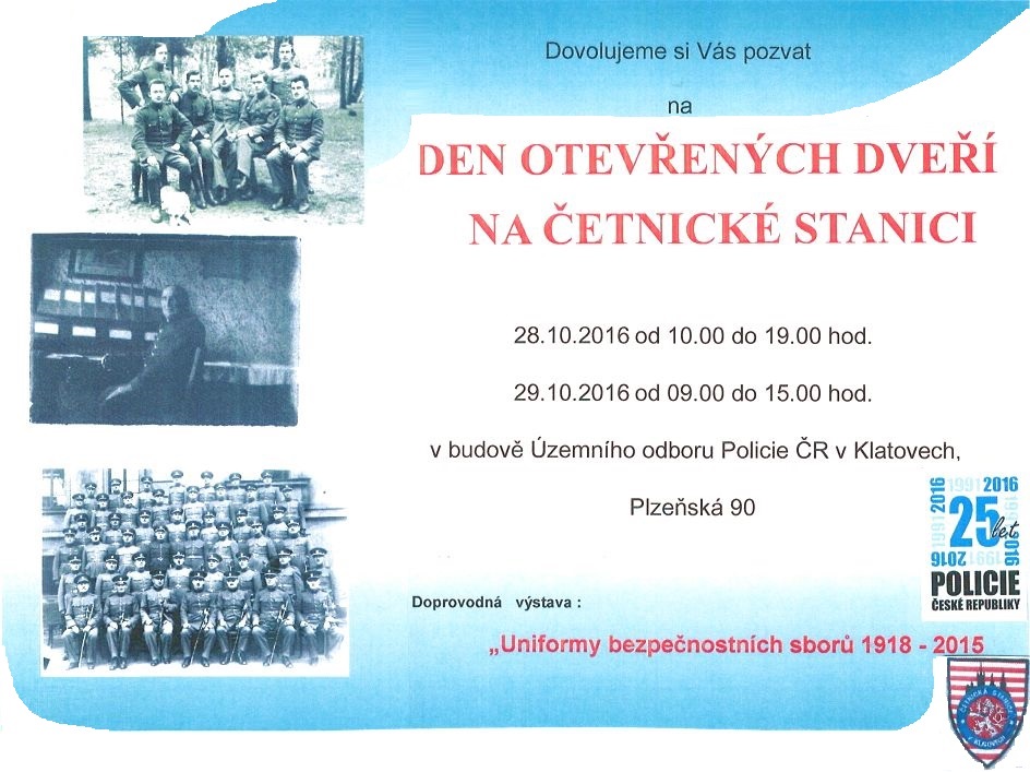 KLATOVY - Ve dnech 28. a 29. října bude pro veřejnost otevřena četnická stanice. Vystaveny budou i uniformy bezpečnostních sborů.